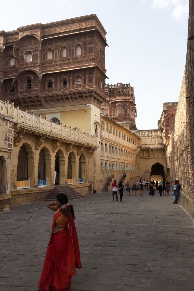 沿着蜿蜒曲折的小巷,踏上石阶,进入梅赫兰加尔堡。这座威风凛凛的建筑彰显了过去那段历史的辉煌。