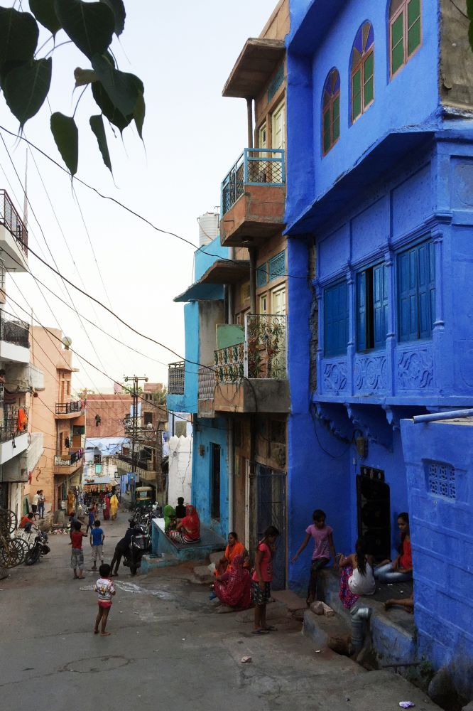 希腊的圣托里尼(Santorini)和突尼斯的西迪·布赛义德(Sidi Bou Said)蓝城的蓝色是天蓝、湛蓝、蔚蓝;海洋与蓝白两种颜色的建筑搭配出极为亮丽的风景。而焦特布尔的蓝色与摩洛哥的舍夫沙万(Chefchaouen)都是靛蓝、纯蓝、深蓝,与周围拉贾斯坦塔尔沙漠的干燥棕色完美地并列在一起,像是沙漠中的海市蜃楼。