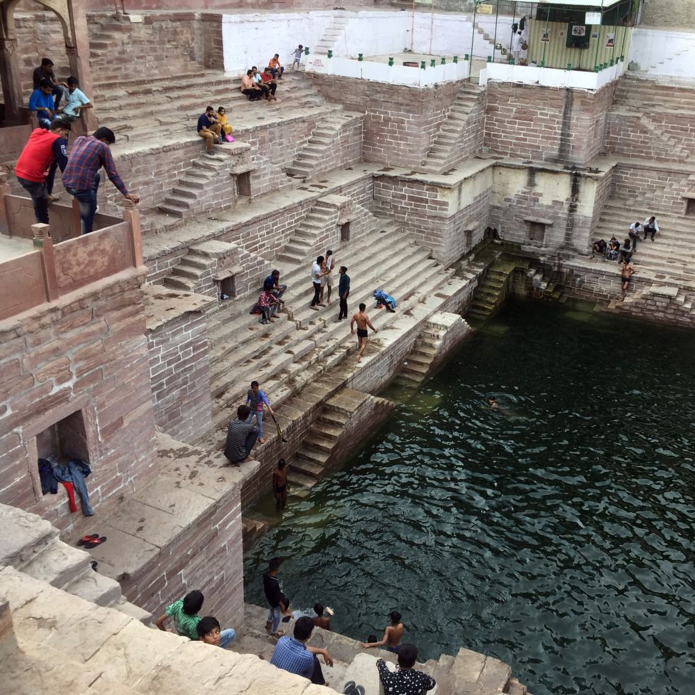 Toorji ka Jhalra台阶井建于1740年。据说从前焦特布尔有50多个这样水井,当地人用它们来贮水、汲水。台阶水井精巧的几何设计,气势恢宏的砖石结构堪称是印度诸多建筑奇观之一。1996年政府实施英迪拉·甘地运河计划,自来水管道接入蓝城中几乎所有家庭,这些古老的水井大部分沦为垃圾填埋场,庆幸的是少量得以保存下来。