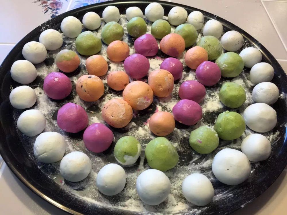 周末提前过元宵节,老婆准备了四种不同的馅,为了区分,在糯米面里加了颜色,成了彩色的汤圆。颜色是用蔬菜汁做的,绿的是菠菜汁,紫的是beats,桔黄色的是胡萝卜汁,还有本色白色共四种颜色。 另外还烙了春饼,就是一张饼起八层的那种薄饼,做了四五种卷菜,包括京酱肉丝,酸菜肉末,豆芽炒肉,韭菜鸡蛋,土豆丝,还有什么记不得了。请了一众朋友来吃。吃得太[阅读全文]