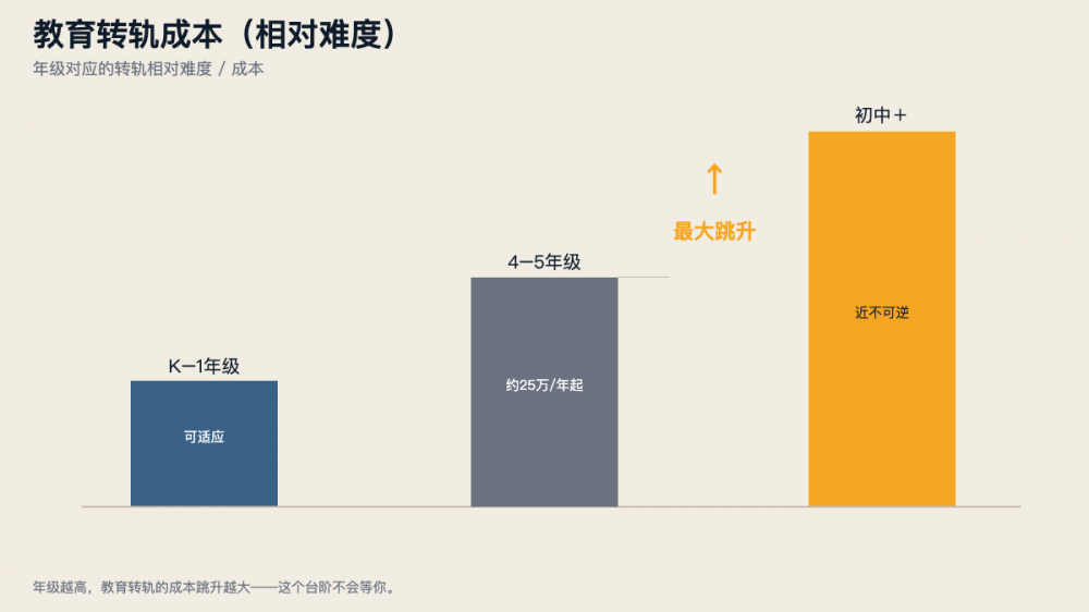 更深一层的成本不在学费上,而在选择权上。一个在美国长大的孩子,通常会走上一条更容易通往美国大学、然后进入全球就业市场的路。这条路一旦中断——比如回国读了几年国际学校又回来——中间的断层很难弥补。反过来,如果在国内扎根走高考路线,未来再想回到美国的高等教育体系,成本和不确定性也会上升。