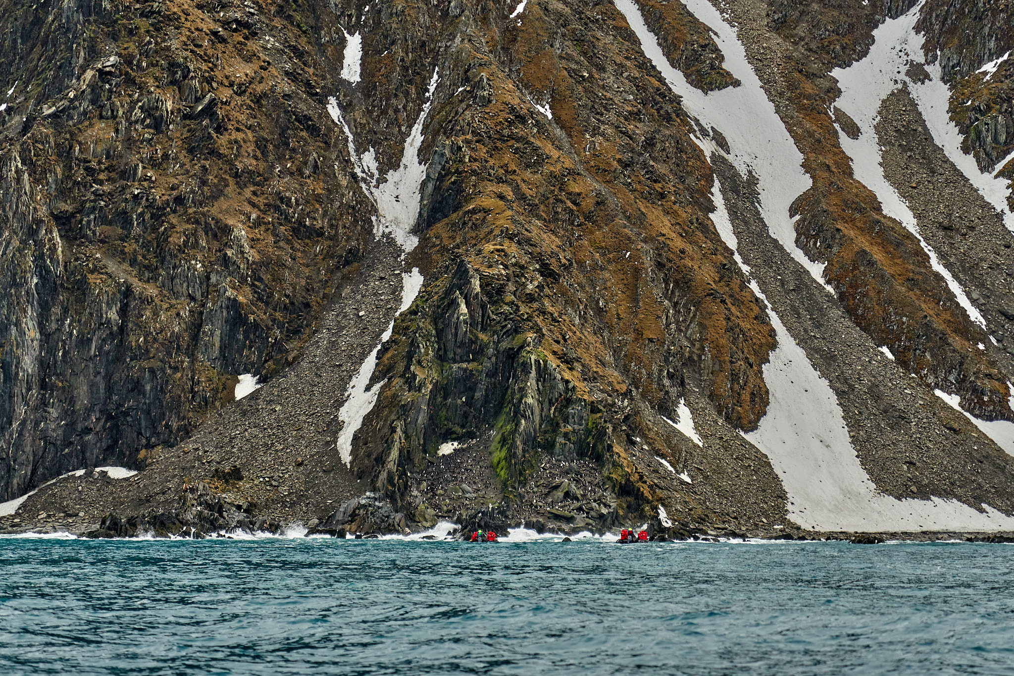 6. 探险队长胆子大,队员们个个身手不凡,巡游按计划进行。有意思的是没有人不参加巡游,也没有人晕船。我们乘着这些小小的橡皮冲锋舟在怀尔德角的波涛里上下颠簸,领略南极严酷的一面。