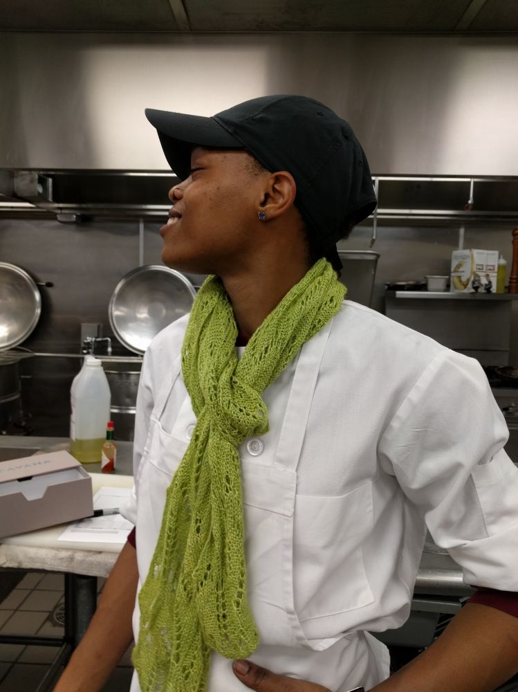 织好后送给Tenisha,但没看到她戴。于是问她为啥?Tenisha说你这围巾这么娇嫩,清洗又麻烦,我把它装盒子里收起来了。围巾就是要戴才能体现它的价值,难不成要把它供起来?虽然照亚洲人的观点觉得绿色要配白皮肤的才好看,但喜好是非常个性化的事情。