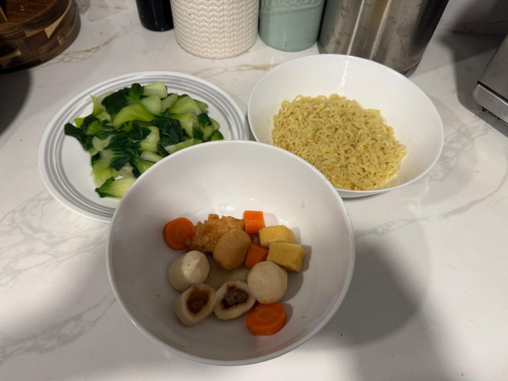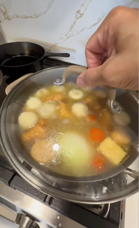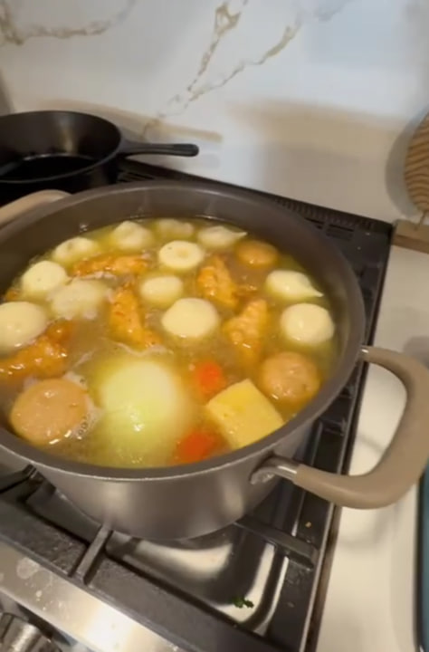 包心鱼丸和肉丸做了一锅汤底,汤底做好,准备好车仔面,味道太绝了!