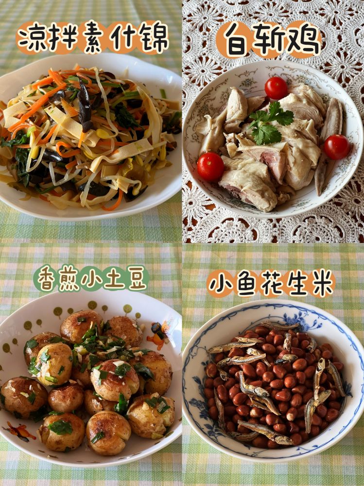 订了四个菜:一个自己喜欢的;一个女儿指定的;一个先生指定的;还有一个自己常常做,但想知道店里的味道和口感的。