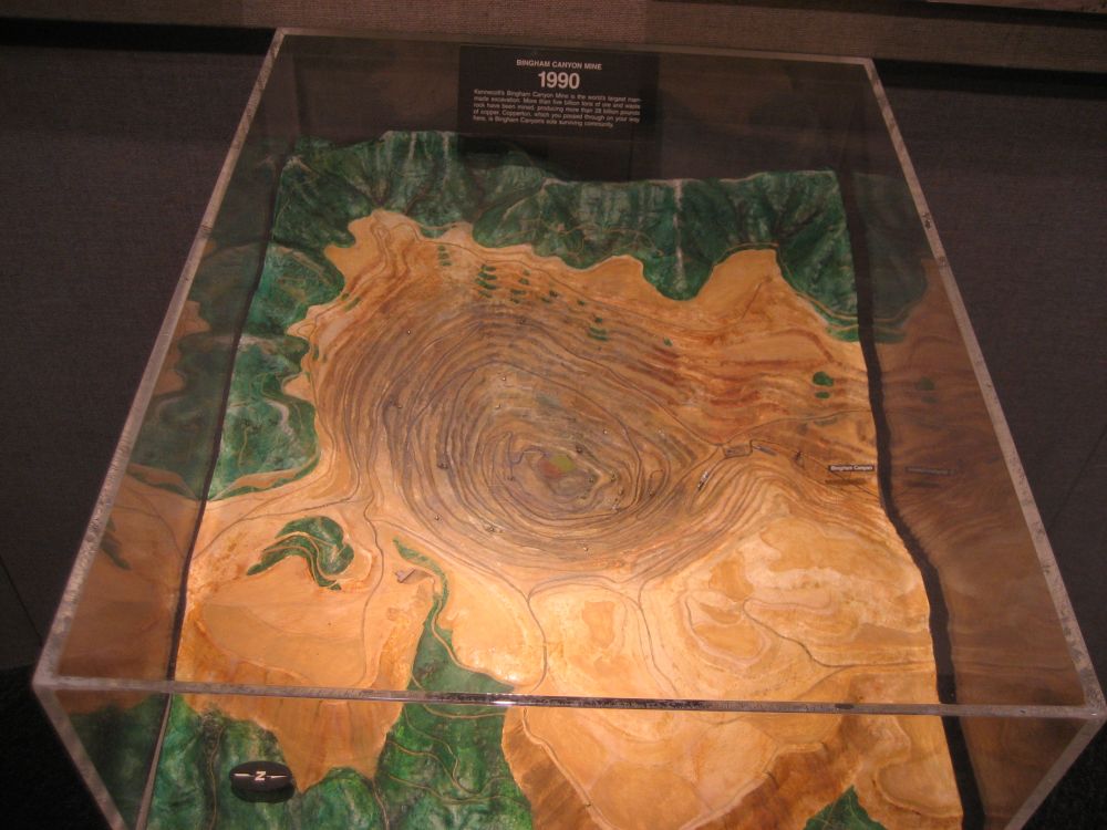 上面那个车的大轮胎 轮胎上的说明 采矿石 早年的矿车 客户服务中心里的各式展品 世界各地的各种矿场 1900年的矿区 1930年的 1960年的 1990年的 2015年 各类矿石