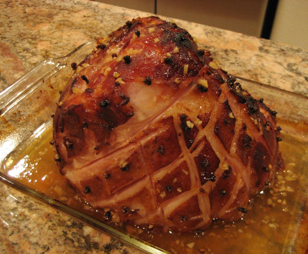 2、一盒菠萝罐头的汁,2 大匙蜂蜜,2 大匙蒜末,上述材料搅匀,放小锅里煮开,浇上火腿上,然后用勺把烤盘里的蜜汁不断地浇在火腿上,