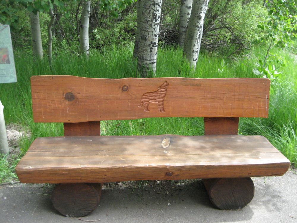 #36 路上一个个极具特色的木长椅,上面刻着各种不同的动物