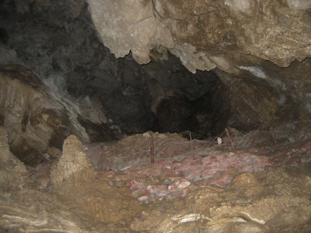因为钟乳石还在滴水,所以洞里的路都很湿(春天积雪融化的时候更湿),路上基本都是刮了条纹的水泥路(但还是比较滑),只有这一块地是保留了原来天然的地