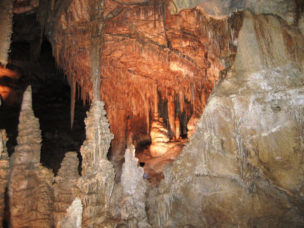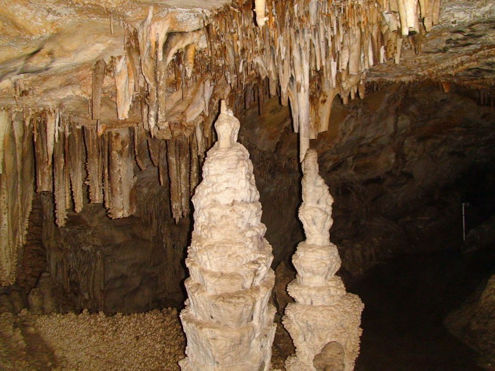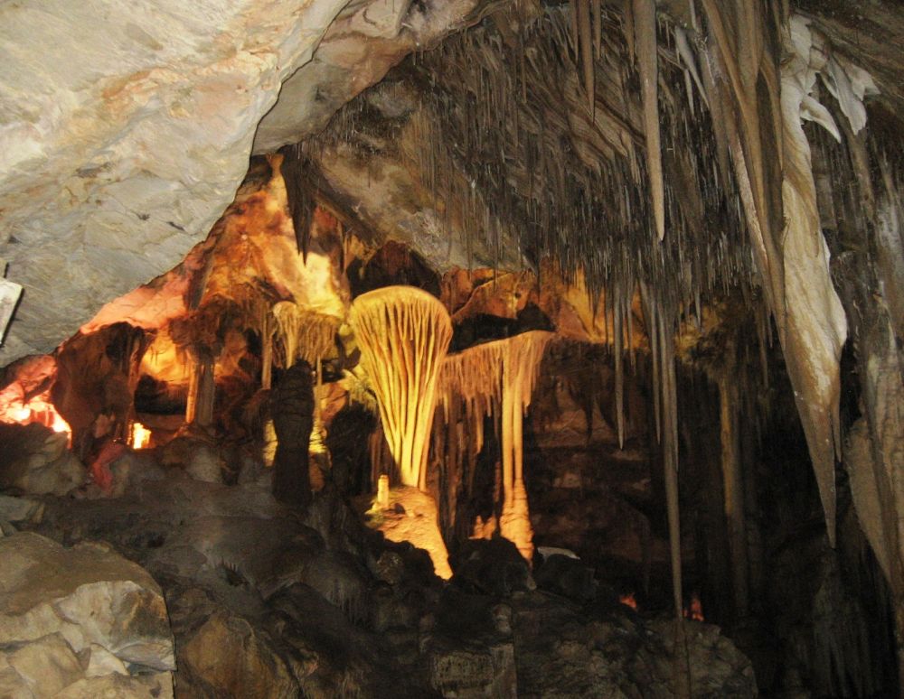 入岩洞前会让每个人亲手触摸一块钟乳石和一块石笋,前告诉大家入洞后不能再触摸它们,因为人手上的油脂会破坏它们。