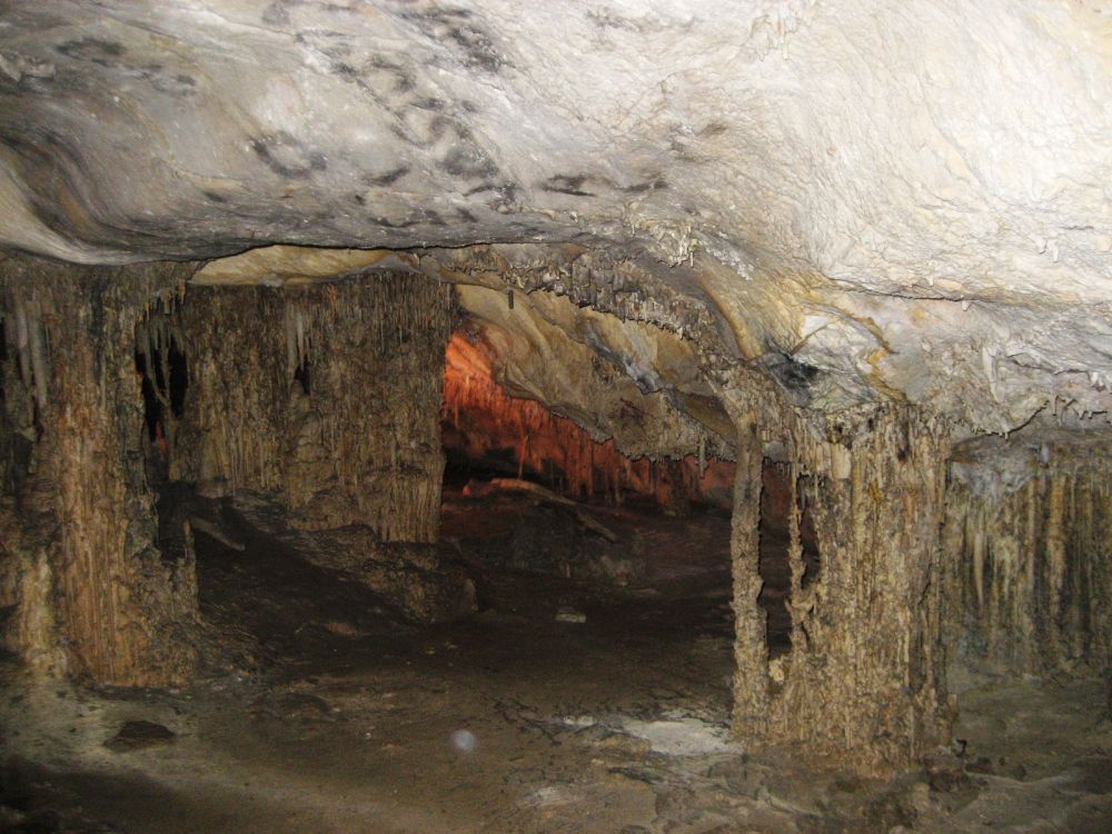 洞内因为非常黑暗很难辨别方向,当年还有人在洞顶上用蜡烛画上了箭头指路