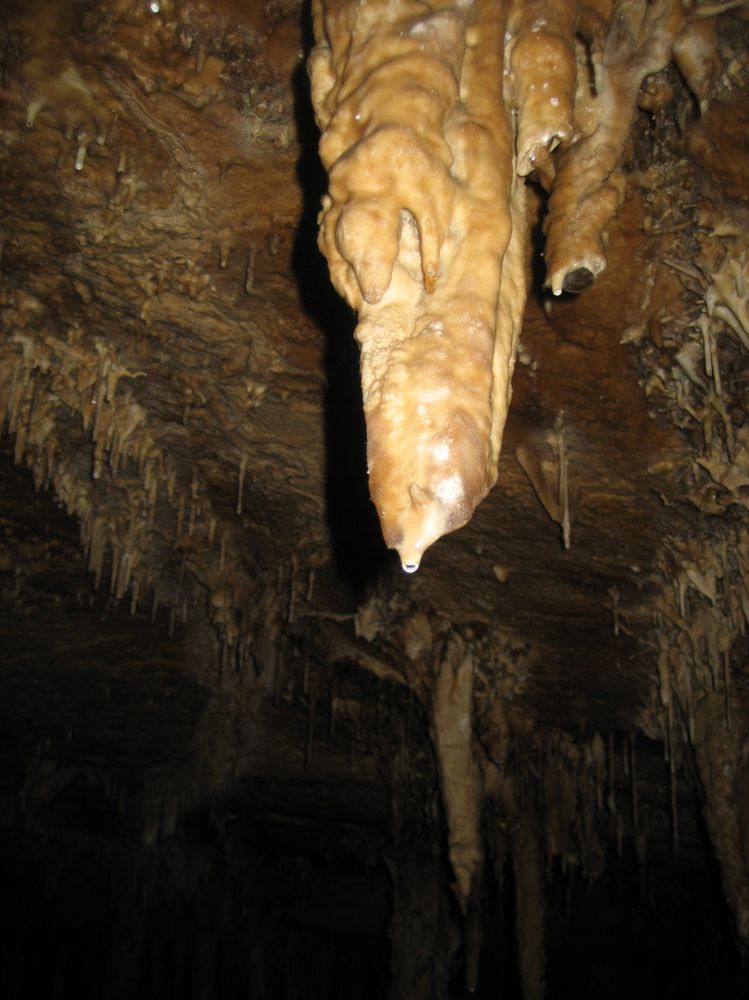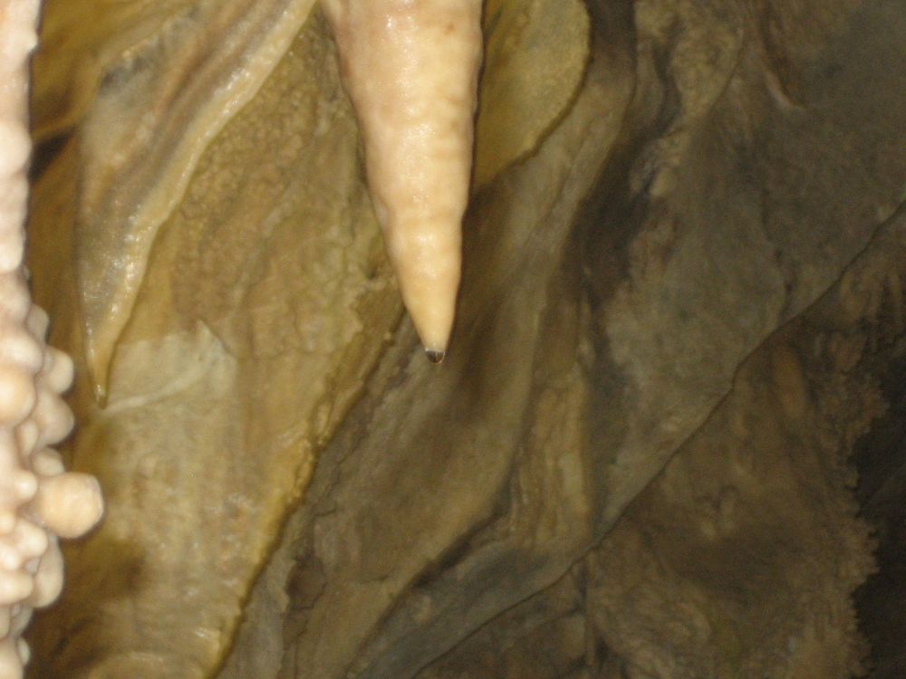 看见照片中间那个很平的钟乳石断面了吧,那是1985年被截断的,仔细看看上面那个小小的钟乳石,那就是这25年新长成的,神奇吧~~~