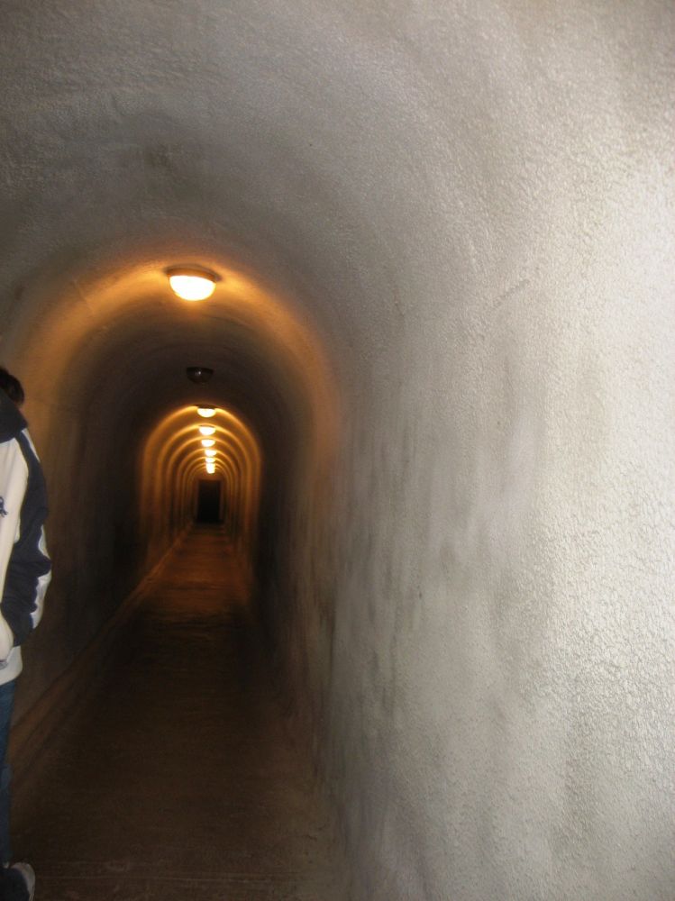 出口处长长的人工甬道,导游在这里再次关掉所有的灯让我们感受与黑暗有鲜明对照的很大的回音