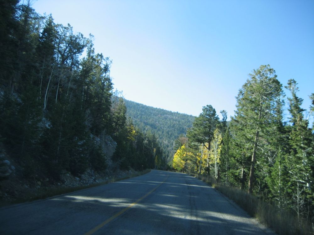 开车上惠勒峰(Wheeler Peak),这12英里的路就象是走在天边一样,坐在副驾驶的我吓的一直对LG叫着:慢点~~~慢点~~~往里点~~~往里点~~~ 太陡的地方根本不敢向旁边看,拍的都是比较不陡的地方。