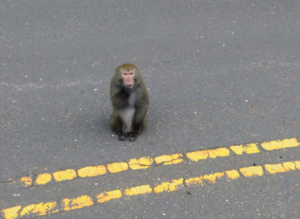 这只就在我们车边上,因为距离太近了,我们害怕没敢开窗,刚停车的时候它很期待的向车里张望,最后它很失望的不看我们了,我外甥女打趣说:猴子一定在心里念:这一车小扣,肯定是大陆人。把我们乐的,哈哈~~~