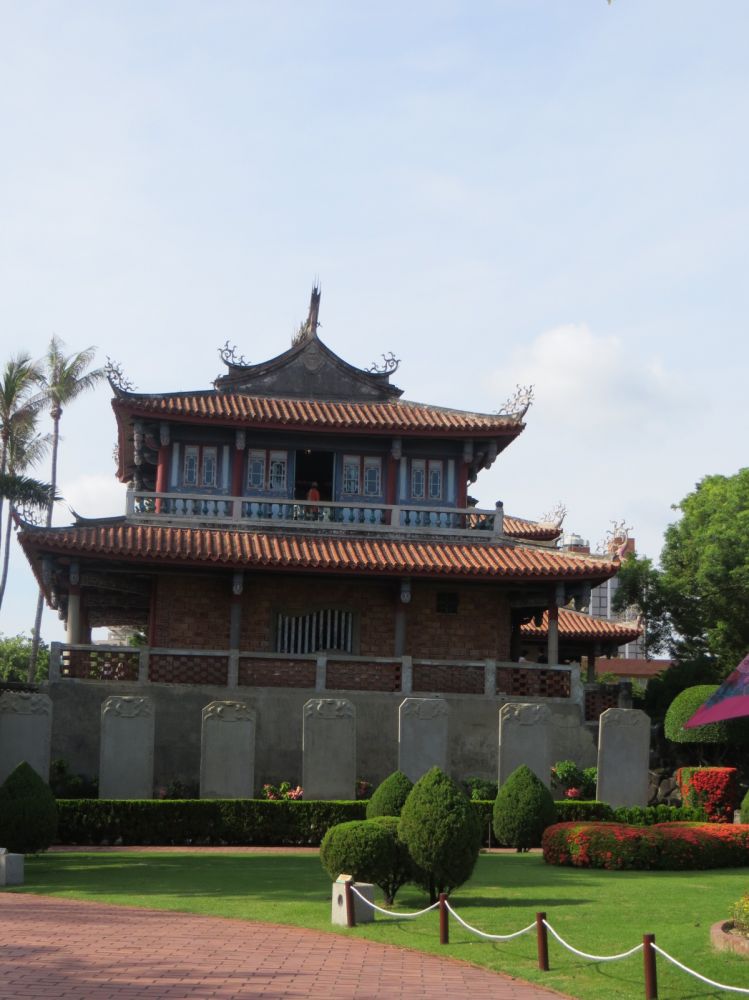 赤崁楼 前身为1653年荷治时期兴建之欧式建筑普罗民遮城,亦称省城、摄政城、红毛楼、当地人叫“番仔楼”),曾为全岛统治中心,至清代已倾圮,仅留部分残迹。汉人后在原址之上兴建中式祠庙,1960年又由大南门城内迁来九座赑屃碑,终成今日样貌。今日赤崁楼其实是普罗民遮城残迹,以及海神庙、文昌阁的混合体。现在列为一级古迹。
