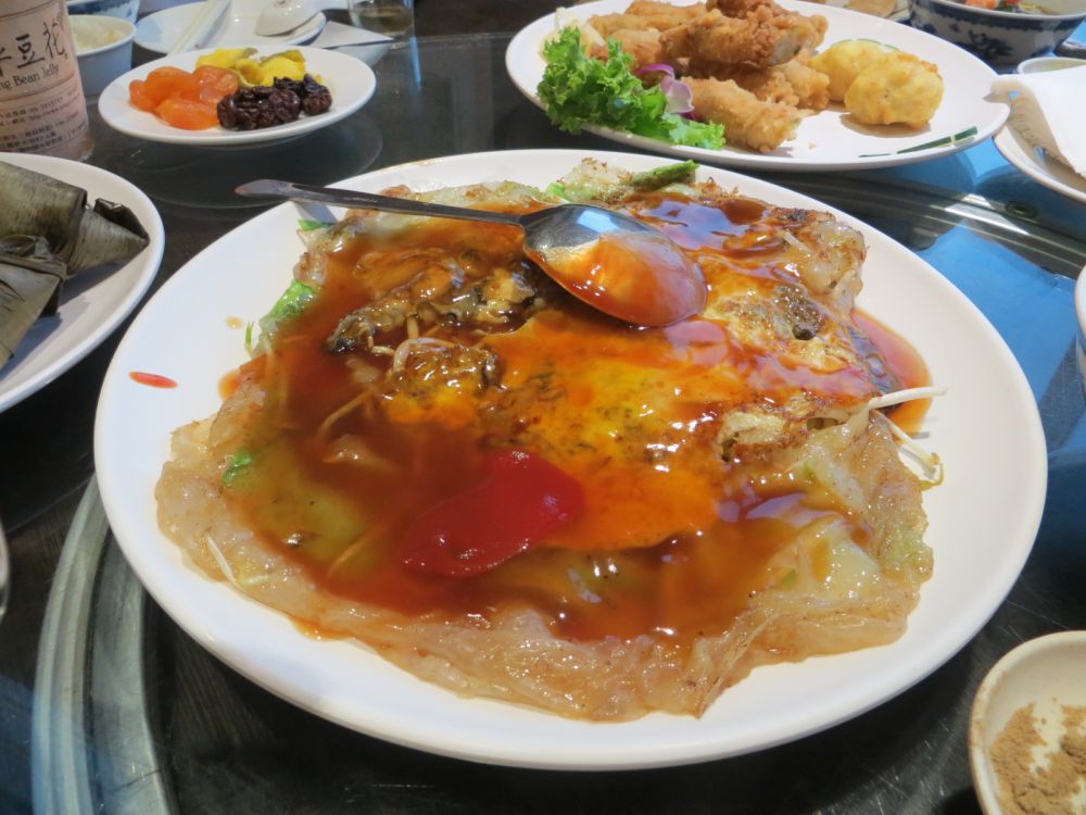 周氏虾卷、担仔面、虱目魚粥、虱目魚丸汤、棺材板、蚵仔煎、花枝丸、台湾肉粽、空心菜、果干、水果、杏仁豆花等