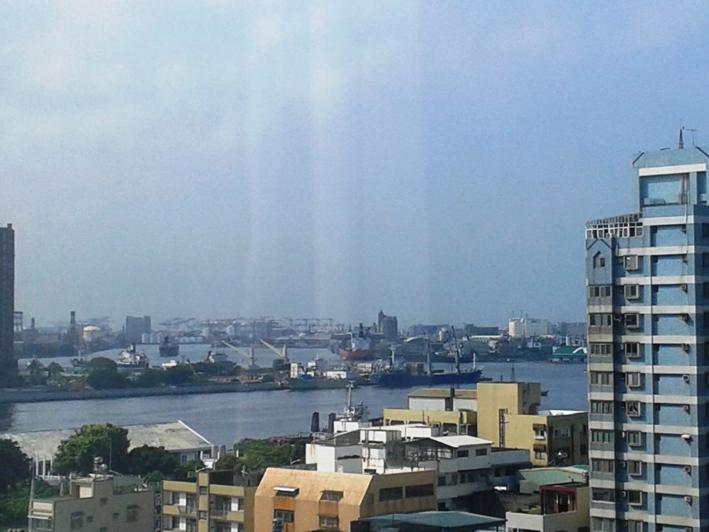 夜宿高雄爱河的华王大饭店,远处是高雄港