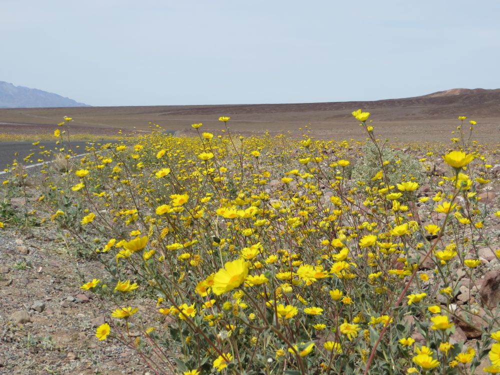 从新闻看到死亡谷今年的野花开的非常茂盛,野花是年年有的,但如此大面积地毯似的盛开还是不多见的,上一次大面积盛开是在10年前,今年的盛况与25年前相似。