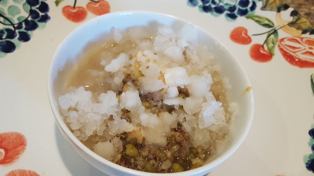 还有炒土豆丝、西红柿炒蛋,配绿豆粥,老公一个人的晚餐