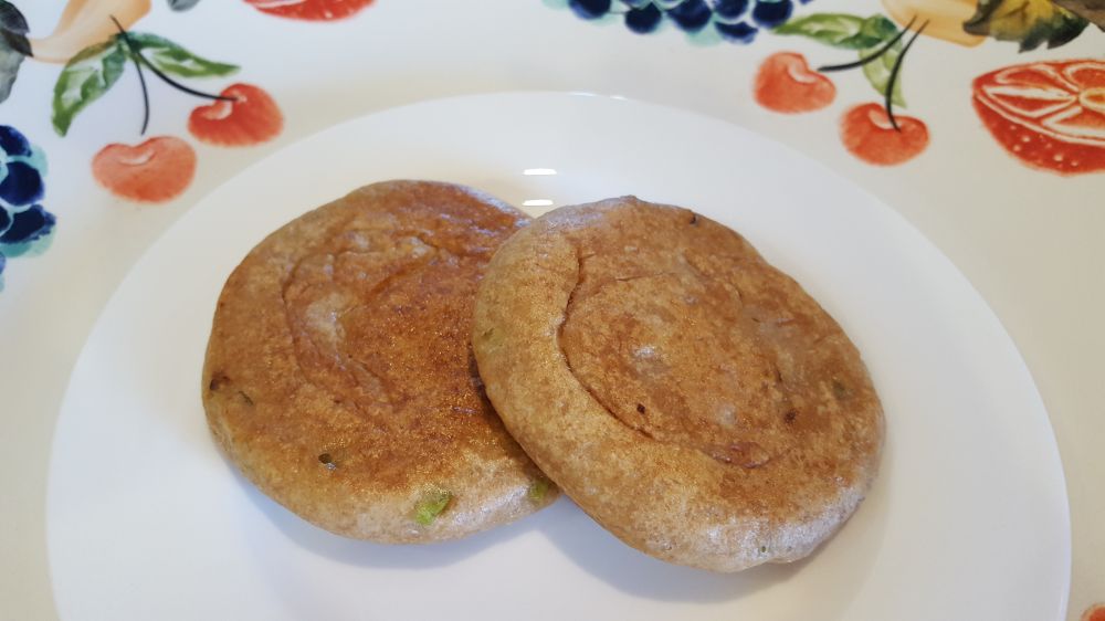 包子剩面做了两个全麦发面葱油饼