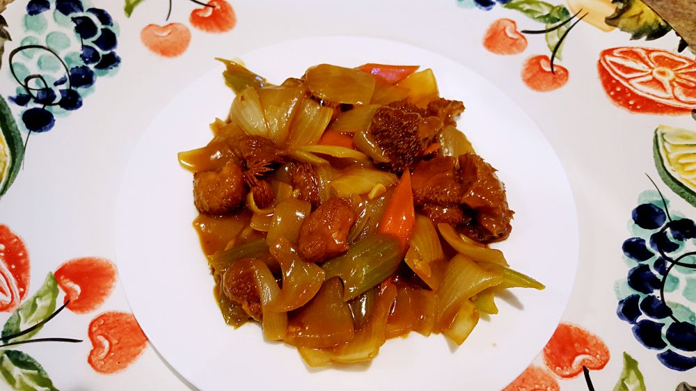 2、锅里放油炒蔬菜,加椰桨和咖哩块煮开,汤煮浓时加入猴头菇,中小火煮10-15分钟就好了。