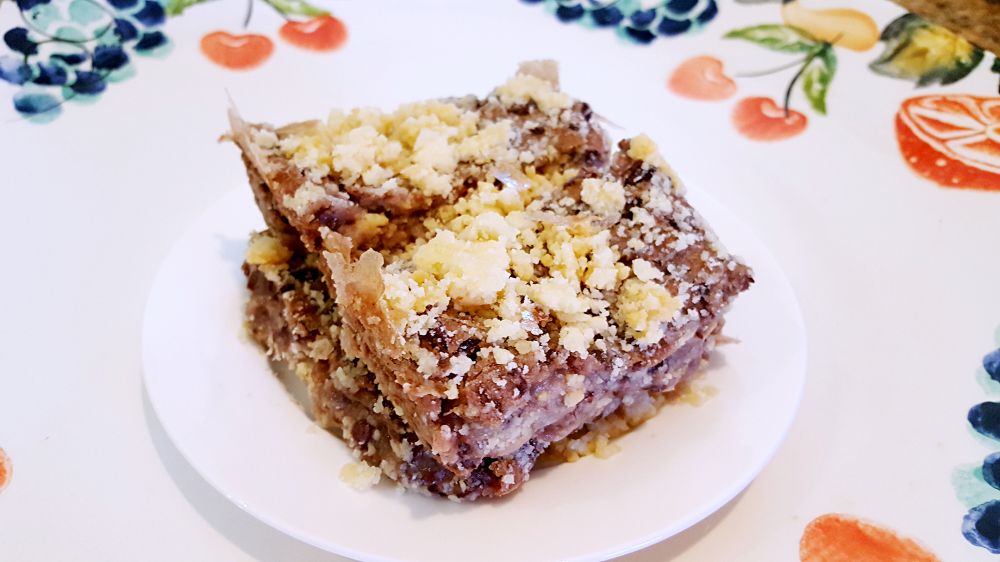 半杯红豆加水放高压锅煮好,煮好的红豆连汤加入糯米粉、糖 搅成厚厚的糊,放入抹了油的玻璃烤盘,黄油+面粉+糖 抓成粉粒放在年糕糊上,放进烤箱350F度,烤40分钟