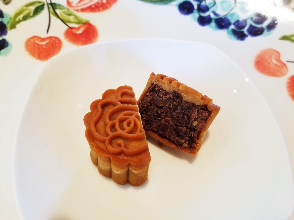 刚出炉的酥皮月饼,白色的都是五仁的,樱花的有一个五仁的,四个红豆的