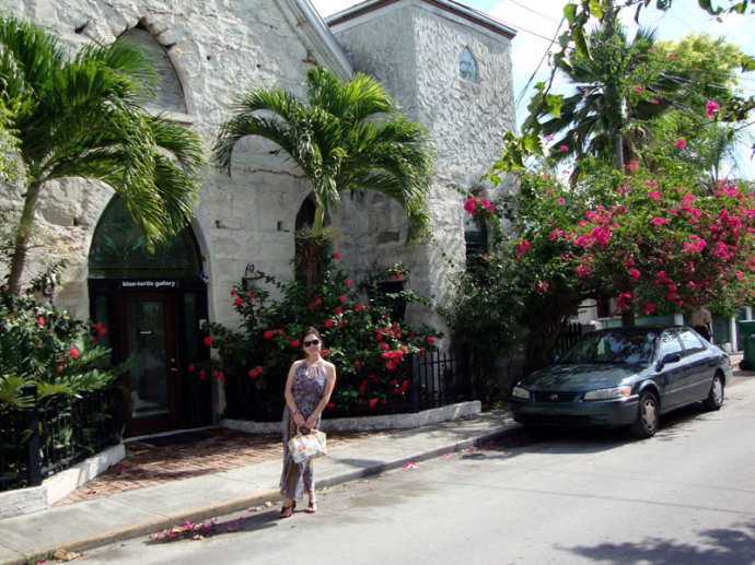 主屋的二楼四周是围着雕花铁栏杆的宽阔回廊,抬头一望就可看见隔街高耸的西礁著名的灯塔。这座灯塔夜晚不仅是过路海船的指路明灯,当年也是从酒吧“邋遢乔”(Sloppy Joe)喝得醉醺醺的海明威找到回家路的指示灯。