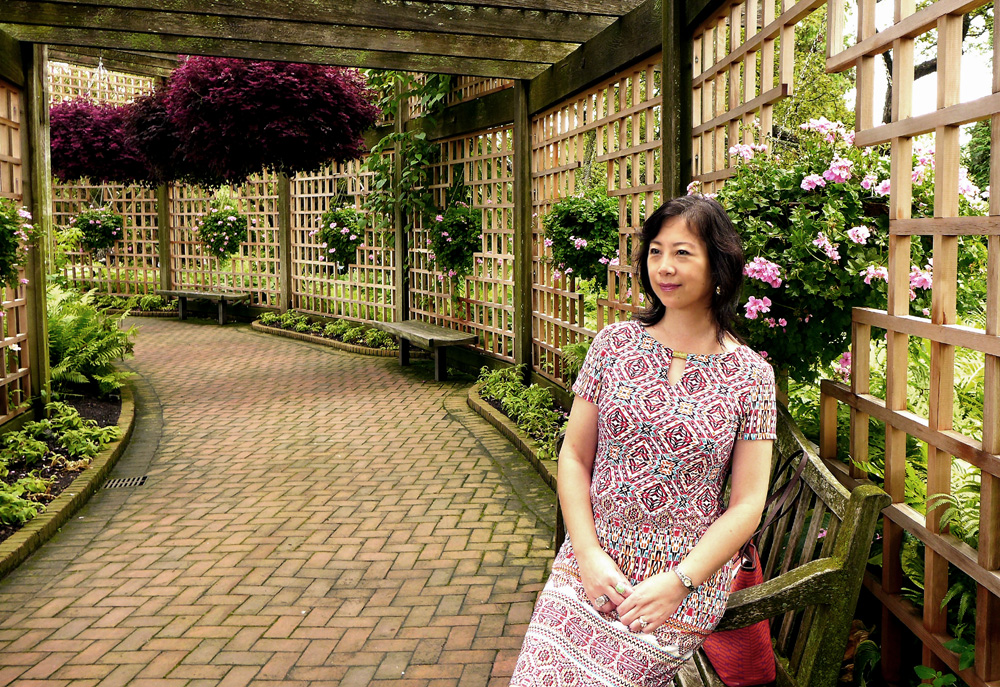。以下一组照片是我们相见的第一天在芝加哥植物园——Chicago Botanic Garden拍摄的。面对满园花朵的千娇百媚,如今已迈入知天命年纪的我们早就淡泊了曾经笑傲群芳的好胜心气,往后的日子里只求有人疼有人爱,云淡风轻、平安宁静,或是只能暗妒群芳艳了吧,呵呵。斗胆篡改伟大领袖的几句诗词来描述我们此刻的心境就是:不俏也不争春,只把春来报,待到百花烂漫时,俺们在丛中笑