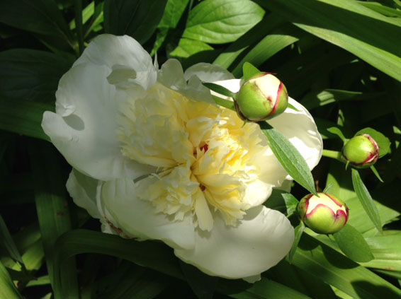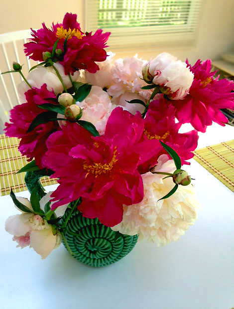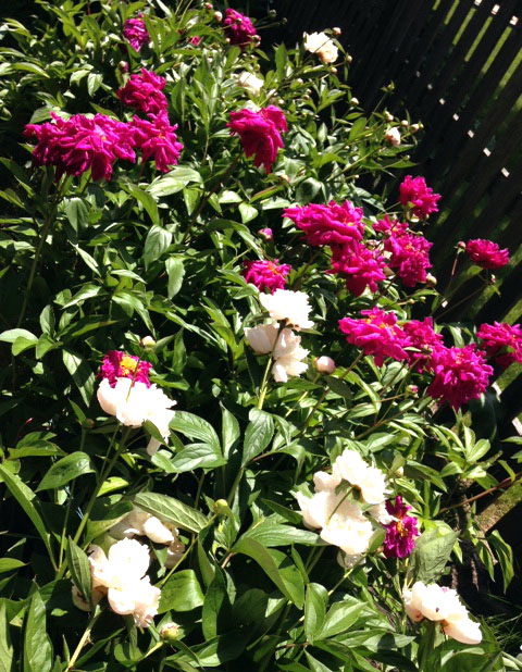 我今早摘了一把插在瓶子里摆到早餐桌上: 再瞅瞅院子里盛放的: 中午大太阳,花有点晒蔫了都~