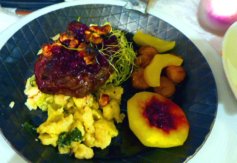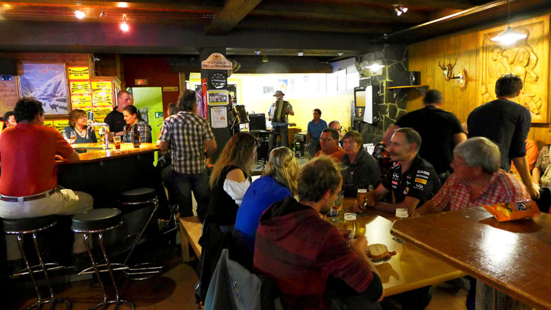 餐后在度假村里随意走走,大部分店铺都已关门。只有这家酒吧人声鼎沸,客人应和着驻店的歌手一起大声唱着瑞士乡村民歌,气氛热烈温馨,很是感染人: