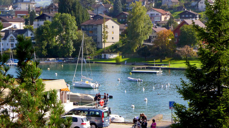 Day 9,2014年9月27日,星期六(续)。在格吕耶尔古堡小镇内享用过午餐,我们同行的朋友分驾三辆租赁的轿车,按计划,驶向风景秀丽的布里恩茨湖游览。