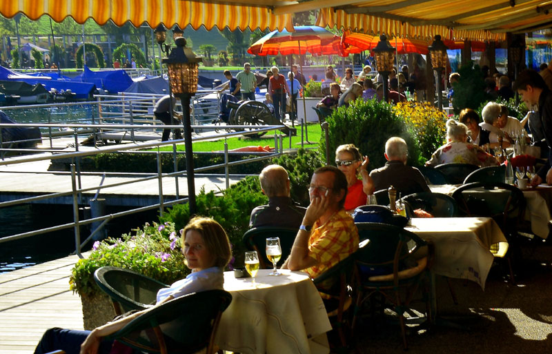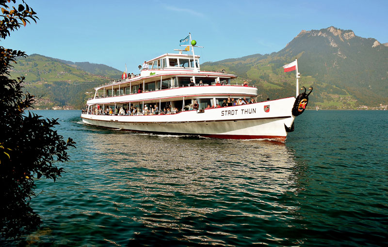 来到因特拉肯,如果时间允许可以选择乘坐布里恩茨湖上的游船,一个往返船程大约为一个半小时,航程中会停靠在沿途的小村庄上下客,想下去走走也可以,然后再搭乘下一班游船。布里恩茨湖两岸风光无限,除了那养眼的绿宝石般的湖水,沿途还可以欣赏到吉斯河瀑布(Giessbach Falls),白晃晃的瀑布从500米高处倾泻而下落入湖内,其间和岩石撞击,咆哮声震耳欲聋,景象十分壮观。我们的“领队”好友Stanley计算了一下时间,如果乘游船的话,之后开去少女峰脚下的文根(Wengen)旅店恐为时太晚,休息不足会影响第二天登雪峰的气力。我们没有乘游船,就在港口附近转转,坐下来静静地看看,眼前的美景已经令人如醉如痴……