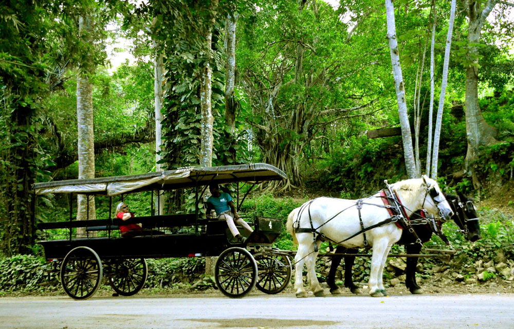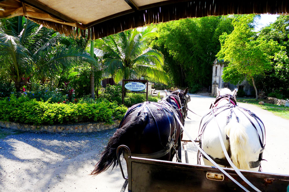 离开古德霍普庄园的主人宅邸,可以选择留下来就餐或者乘坐马车浏览更多庄园主的农场和糖厂的旧址,我们夫妻和少数几位游客选择了颇具怀旧气氛的马车之行。