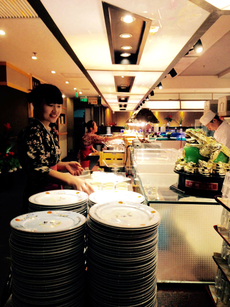 北京的日本料理松子餐厅是连锁性质的餐馆,据说自开头一家小店到生意扩张火了十几年,而今仍是颇受皇城中产欢迎的聚餐热点店,其菜品的质量保持、种类多样化和价格的物符所值是必不可少的因素。除了周末,他家每天中午的自助餐是一大吸引人的亮点!这是先是有朋友请我去吃过,近几年我回京必去的一个大快朵颐的好地方,特推荐给文学城的朋友们。目前此店的自助餐价格是每位150人民币。那里虽然食物选择多多,因为日式烹饪大部分是海鲜,比较寡油清口,吃过饱腹满足而不会产生不适。