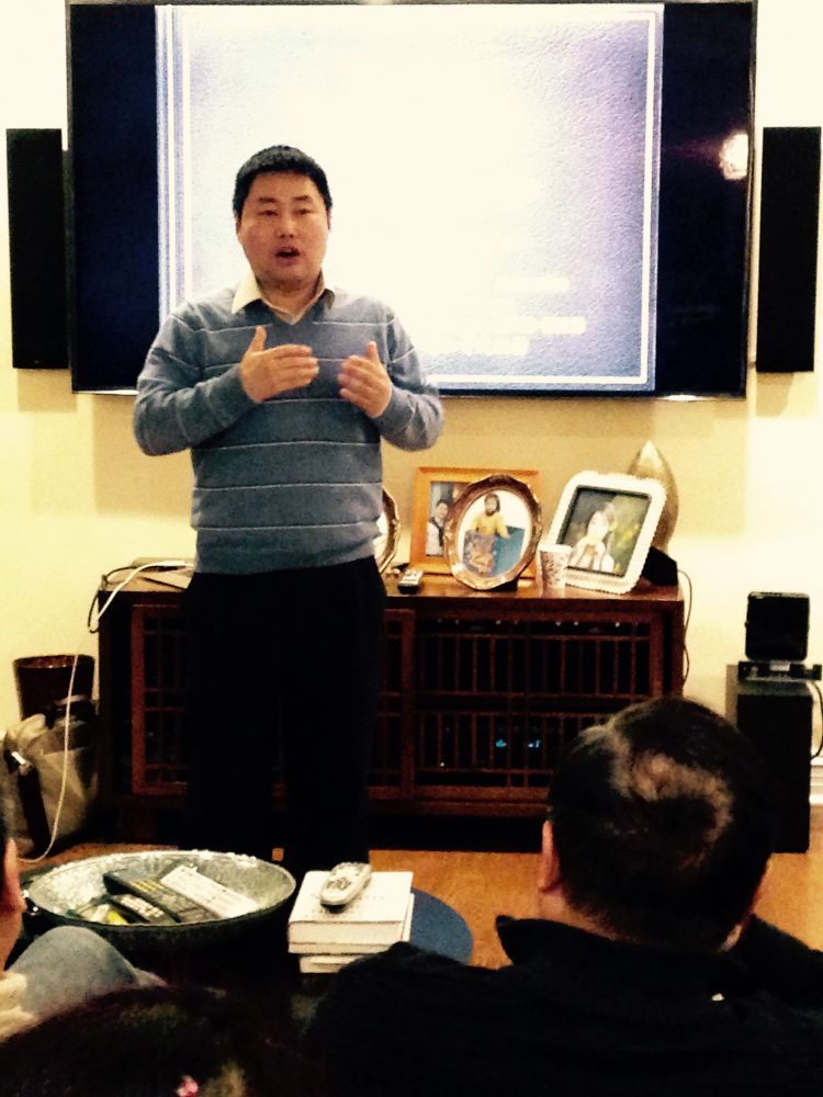 “昨晚芝加哥文化村沙龙在@西湖印象&@小蔡家举办,邀请了张新亚教授漫谈京剧欣赏。新亚毕业于北大物理系,来美后研习声学,在“心理声学”领域颇有建树,现任教于芝加哥哥伦比亚学院的音响及声学专业。新亚对京剧及歌剧情有独钟,曾参演过美国专业歌剧。他灵活运用自己独特的声学见地和艺术灵气,对京剧作了一番幽默轻松的普及性欣赏引导。新亚在多年的教研中曾有机会采访与接触到一些中国的京剧前辈,京剧名家,更是让他对京剧真谛多添了一份立体的感悟。新亚曾在北大,哈佛,哥伦比亚学院等中外名校应邀讲演,介绍中国的传统京剧,每次均获满堂喝彩,昨晚自然也不例外,从始至终笑声掌声不断。”