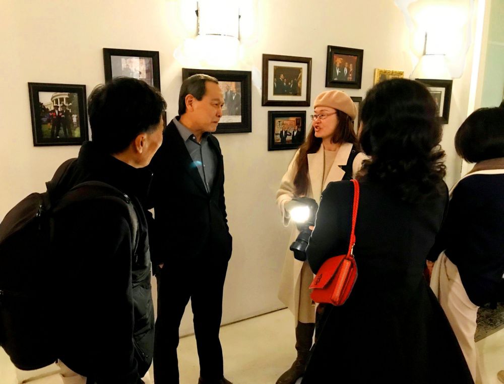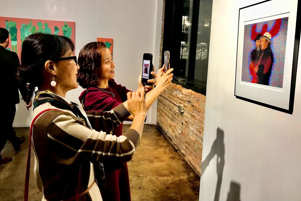 来宾们和周氏兄弟的新朋老友们观看了艺术中心各楼层展区内的艺术作品展览,并友好交流交谈: