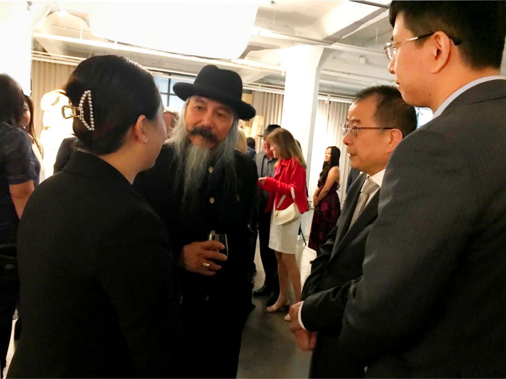 图:周氏山作与芝加哥艺术博物馆亚洲部主任、艺术史学者汪涛(中),中国驻芝加哥总领事馆文化参赞朱琦(右)交流
