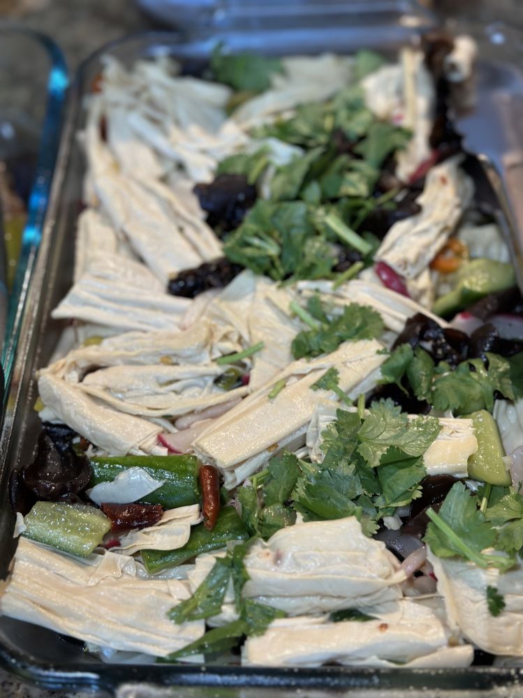 香香好!你问及的那道菜叫“蓑衣黄瓜”,用生黄瓜连刀切然后浇调料,是北方夏季比较流行的一种凉菜。参加聚会之前,有朋友提议大家穿着红、白、蓝或者是有国旗图案的衣服,我们都响应了一下。玩小红书我是新手,现在手机拍视频很方便,我就试试这种新玩意。:)