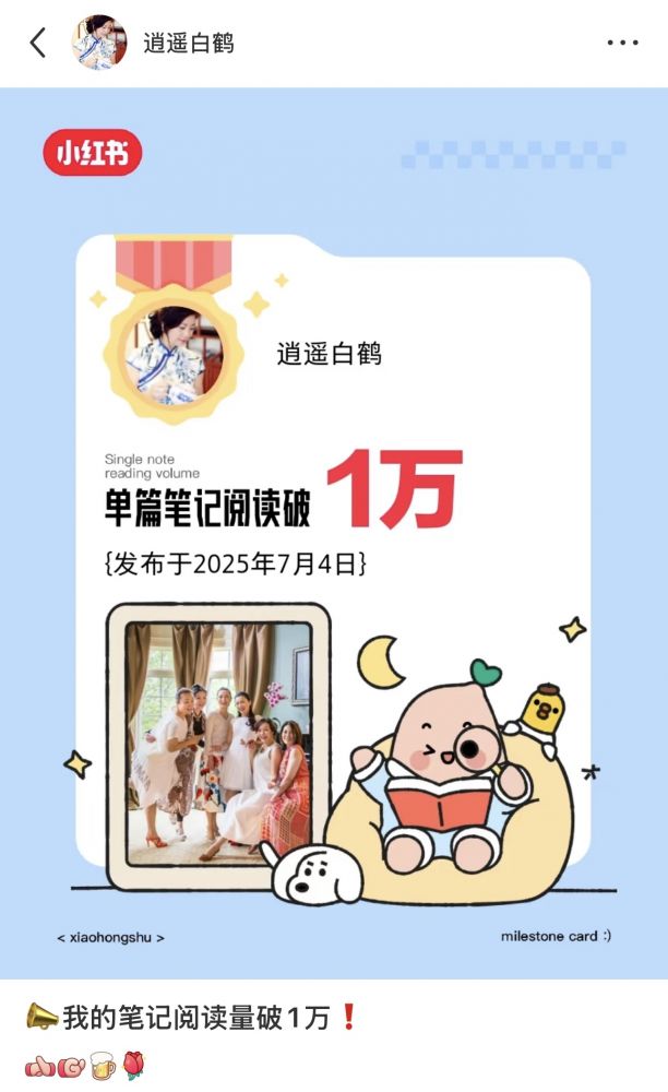 顺便显摆一下,我的某个单篇小红书点击率过万啦,咱老鹤的人气8错吧:
