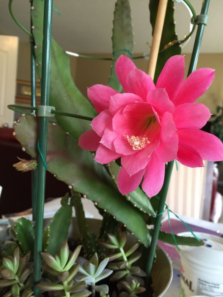今年的第一朵令箭荷花总算开花了,从第一小花苞到开花大概有一个多月,数了数目前还有六个等待开发的小花苞,估计半个月后会有几朵同时开放。