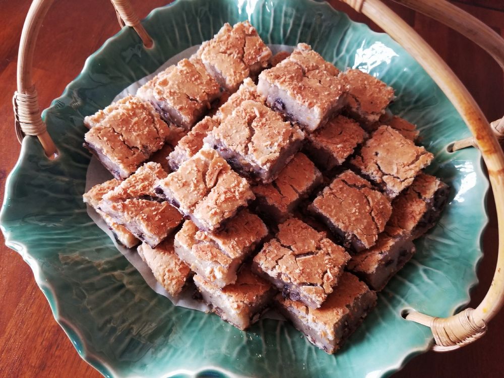 做法1.红豆放高压锅,手动挡煮40分钟。捞出来沥干水,加糖拌匀。2.两个大鸡蛋,140克的糖,75克的油,泡打粉12克,500克的牛奶搅匀3.加入一袋糯米粉,仔细拌匀,没有任何的粉状颗粒,再加入煮好的红豆300克4.长方形的玻璃烤盘放上烤箱纸,到入面糊,上面撒上椰丝,烤箱预热340度大概烤50分钟。最后上火1-2分钟上色取出5.凉了以后切块就可以了[