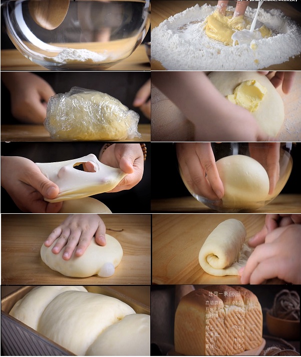 高筋面粉:250g,开水:43g,细砂糖:28g,盐:3g,酵母:3g,全蛋液:20g,牛奶:118g,黄油:15g。
