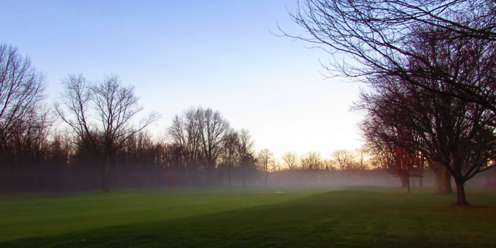 今年美国的冬天相当暖和,雨后的早晨空气清新,院子后面高尔夫球场的草地林间有薄雾