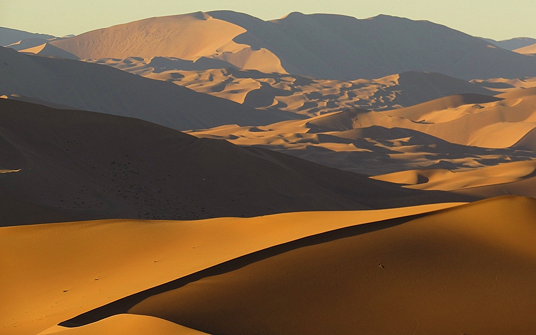 巴丹吉林沙漠现在是个景区,游客可以租乘越野车穿越沙漠,体验驾驶在60~70度斜坡的沙丘上下颠簸的惊险,同时欣赏被称为“上帝画下的曲线”-多姿多彩的沙丘。