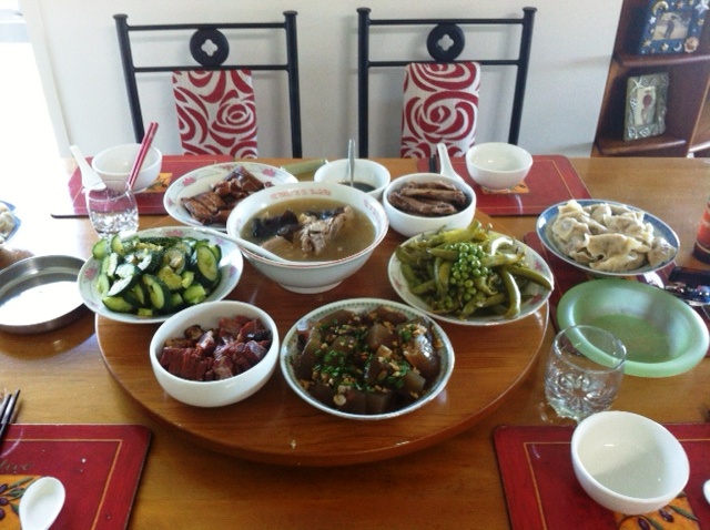 俺们今天隆重召开了迎圣诞包饺子大会:排骨老鸡汤、煮青豆、办猪蹄冻、烧鸭、卤鸭翅、叉烧肉、拍黄瓜。