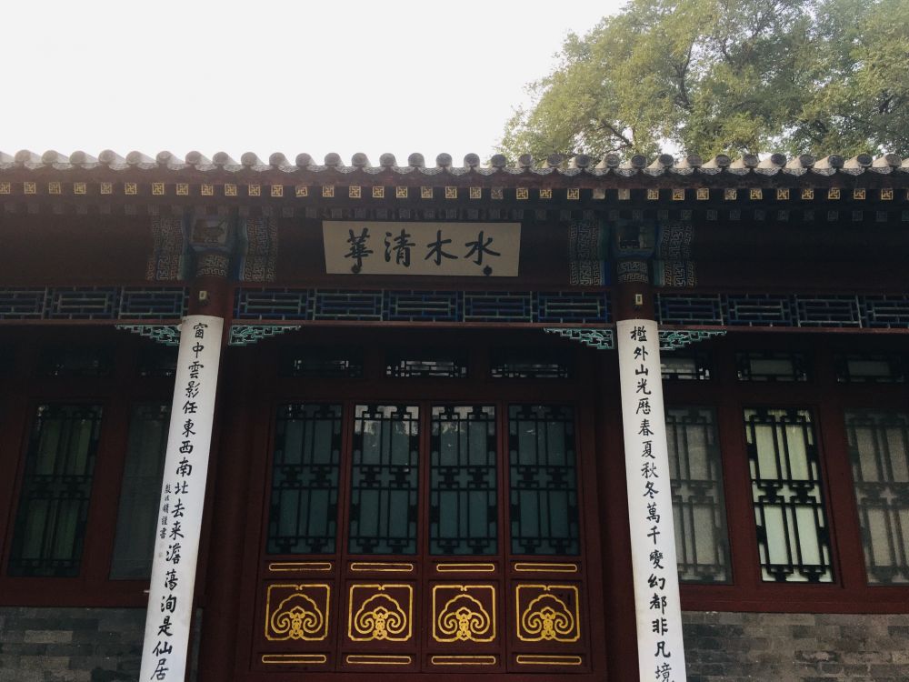 这也是水木清华的名字来源:晋朝谢坤的“惠风荡繁囿,白云屯曾阿。景昃鸣禽集,水木湛清华”