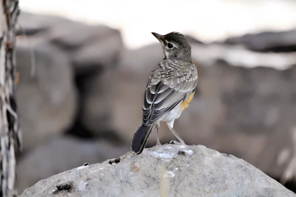 小松鼠走出家门,感觉到身后有人,回头看看,再看看,确定是我后,就高高兴兴地玩去了。