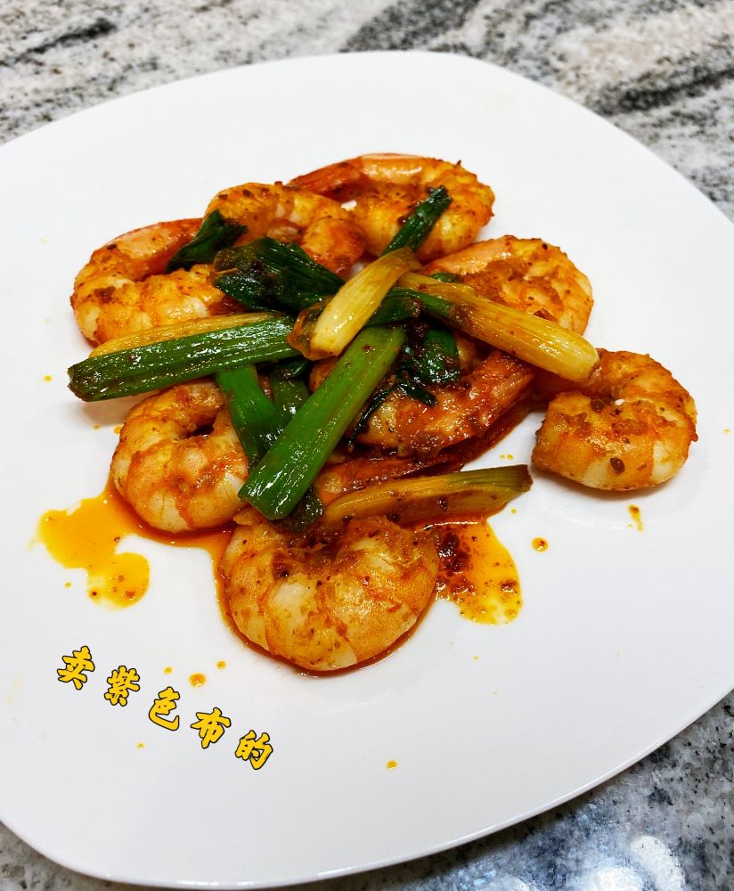 做法:无头虾化冻洗净摸干,锅烧热加入一小勺菜油,加入虾翻炒至八成熟,加入辣椒油,盐,糖和葱段炒几下即可出锅。